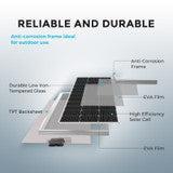 【Optimized Performance】 The Premium Kit delivers an average daily electricity production of 3.5-4kWh (based on 5 hours of direct sunlight conditions). The bypass diode ensures excellent panel performance even in low-light environments, while the TPT back sheet effectively dissipates excess heat, guaranteeing smooth output performance. Achieving a module efficiency of up to 17.8%, this kit maximizes energy conversion.