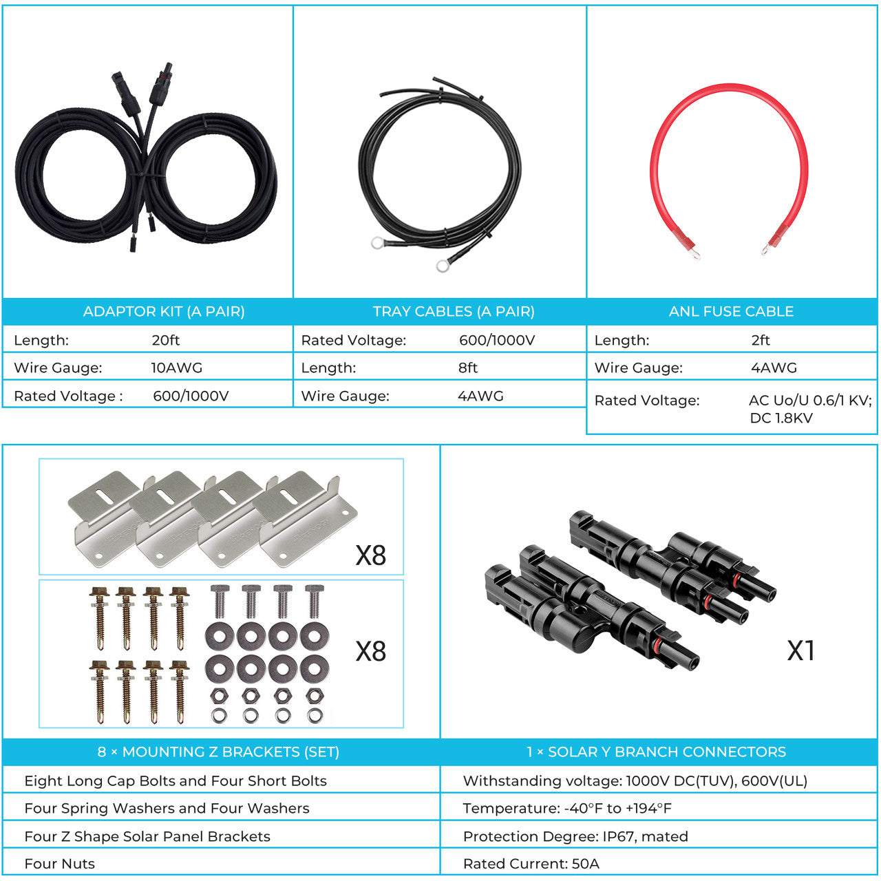 The Renogy 800W 12V/24V Premium Kit is easy for you to install, and it is the most economical choice for the off-grid adventurer. Renogy Solar Kit comes with solar panels, charge controllers, and needed electrical wiring, fuses, and monitoring typically required for an off-grid installation, making it ideal for off-grid and mobile applications.