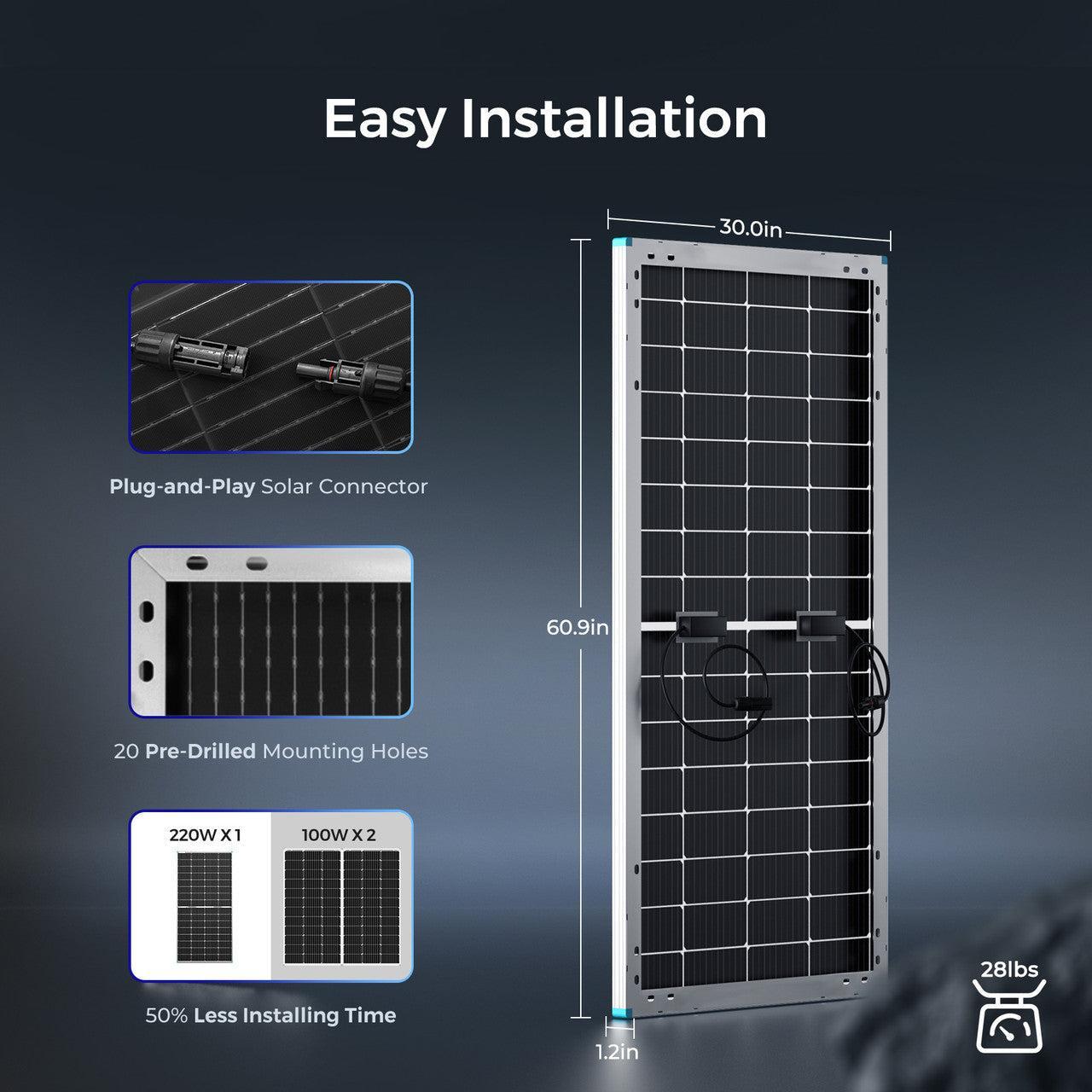 Renogy Bifacial 220 Watt 12 Volt Monocrystalline Solar Panel