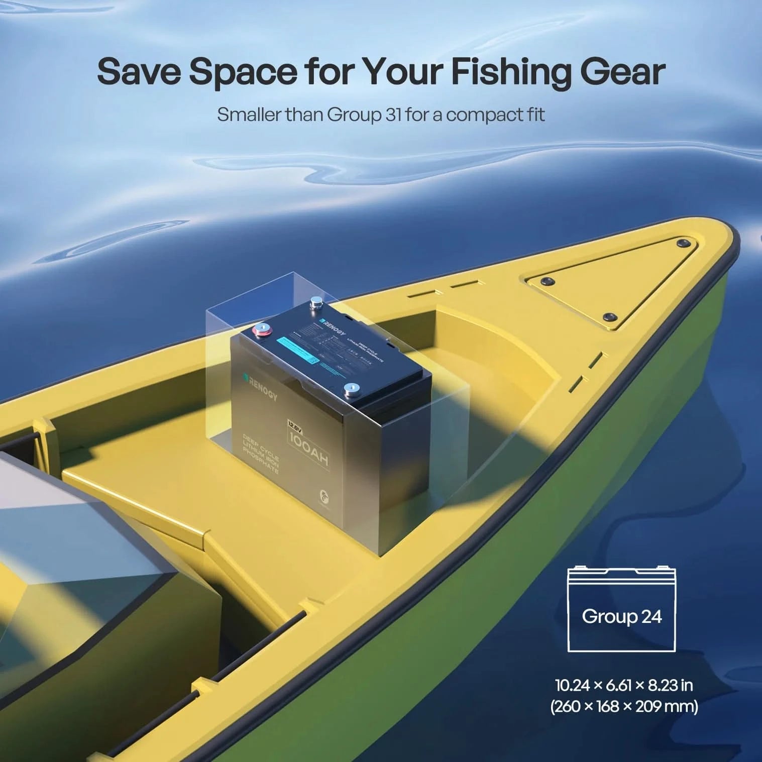 - 21.83 lbs, half lead-acid weight. Group 24, 1/3 smaller than Group 31.