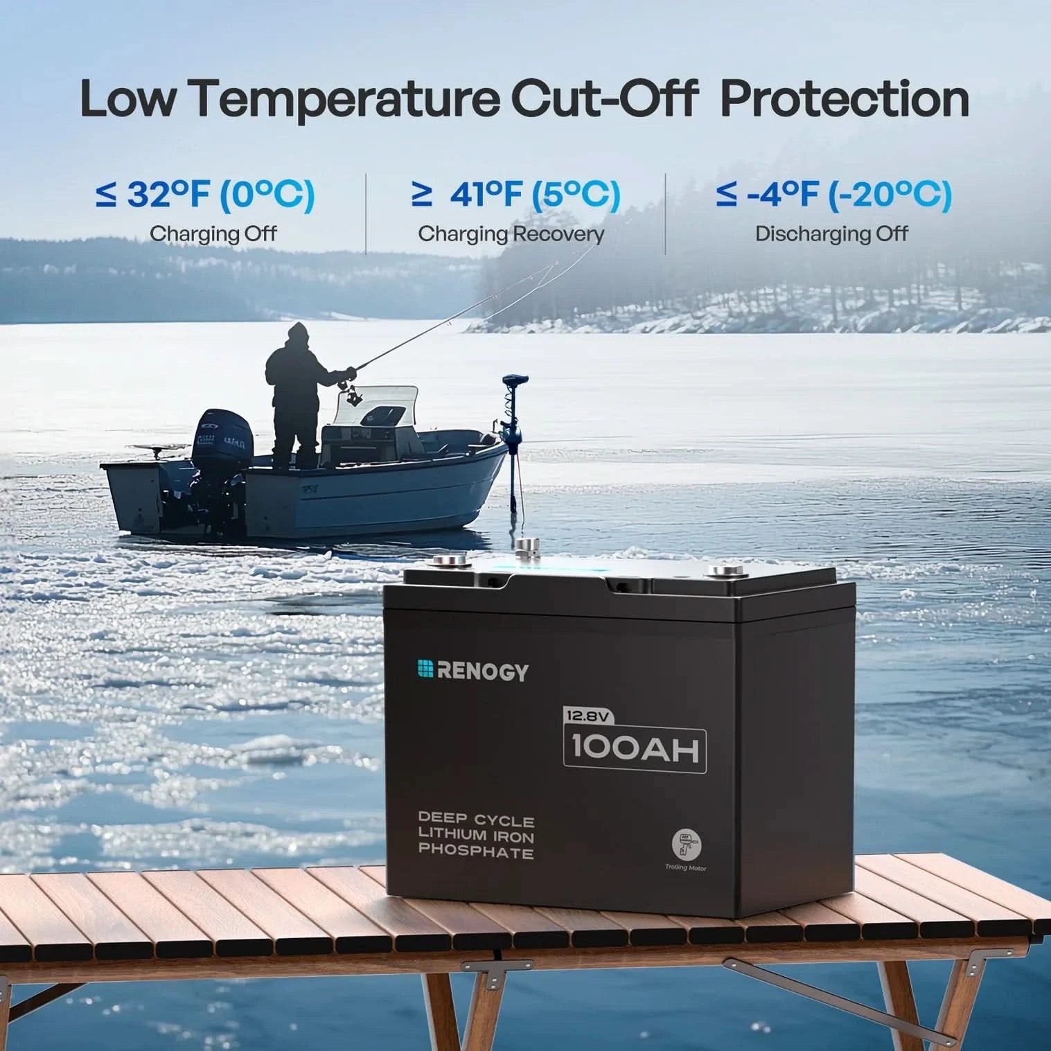 Renogy Core - 12V 100Ah Trolling Motor Lithium Iron Phosphate Battery with Bluetooth