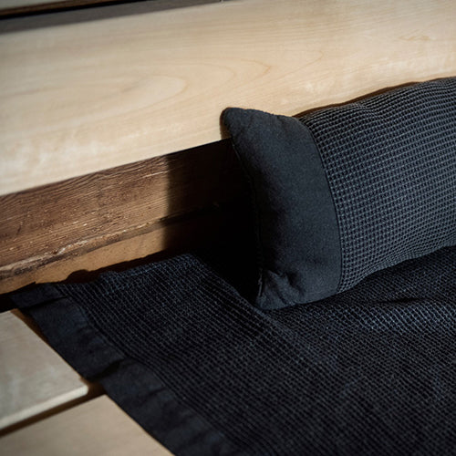 Comfy sauna seat cover with chambray borders. Kenno sauna textiles are made of recycled materials, giving the fabric a natural softness and vibrant texture.