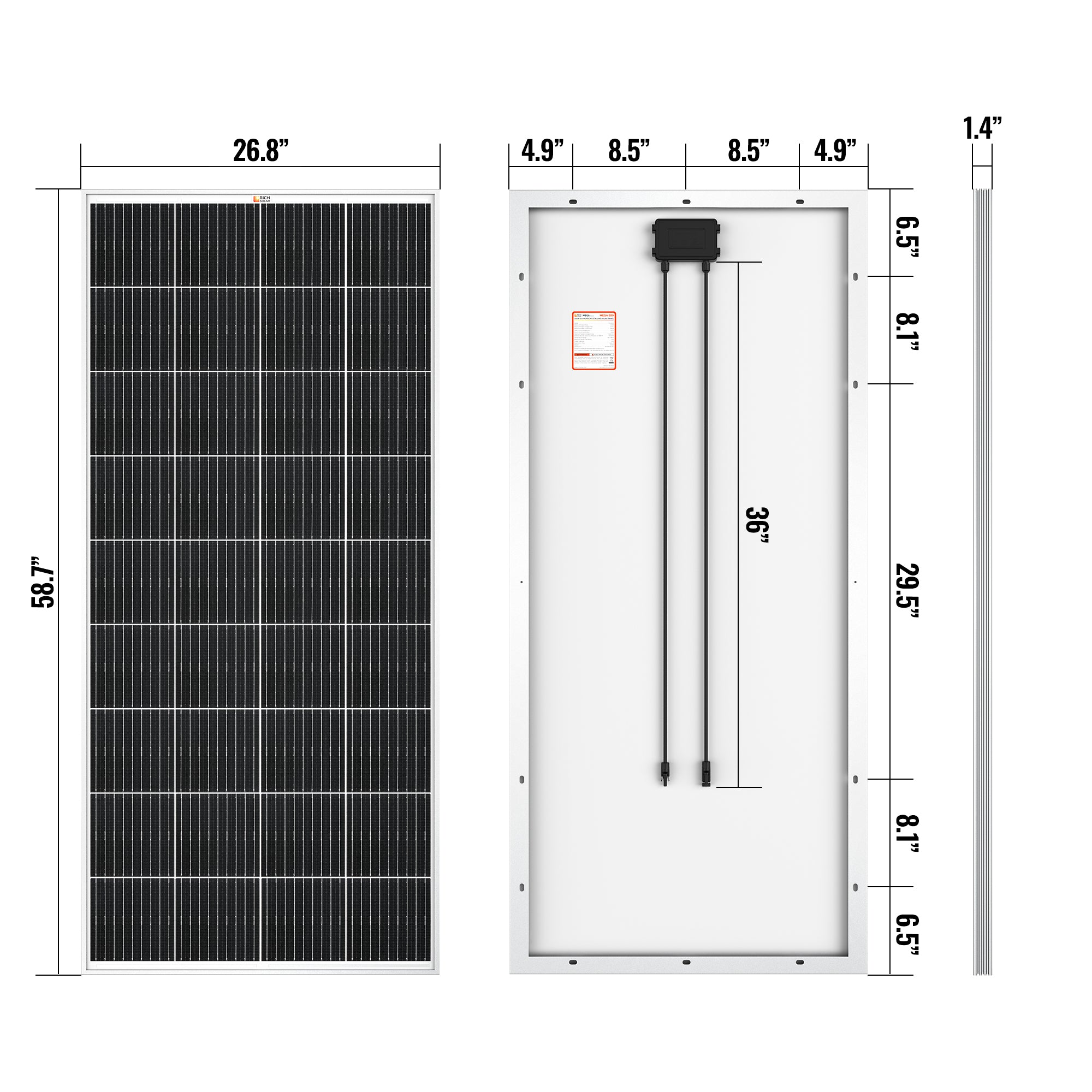 The RICH SOLAR MEGA 200W Solar Panel features a robust design with tempered glass and an anodized aluminum frame, ensuring reliable energy output in all conditions. Easy installation and efficient energy production make it a top choice for off-grid living.