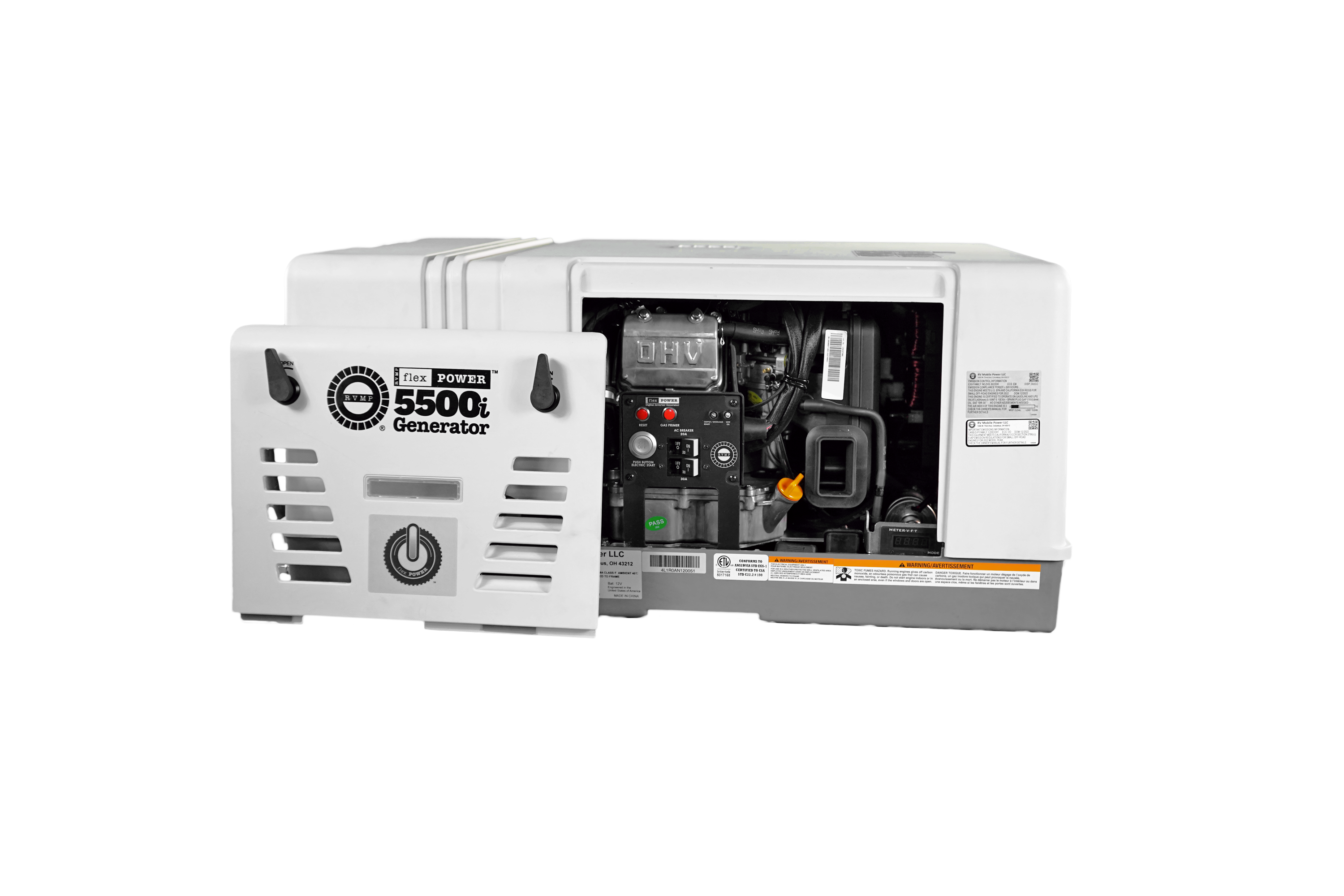 Designed to be: compact, quiet, powerful, and efficient. Ready for new installations or replacements of current generators in RVs, 5th Wheels, Toy Haulers, Trailers, Food Truck Operators, and off-grid cabins/tiny homes. The Flex Power ® 5500i powers appliances and recharges your battery bank for extended off-grid living.