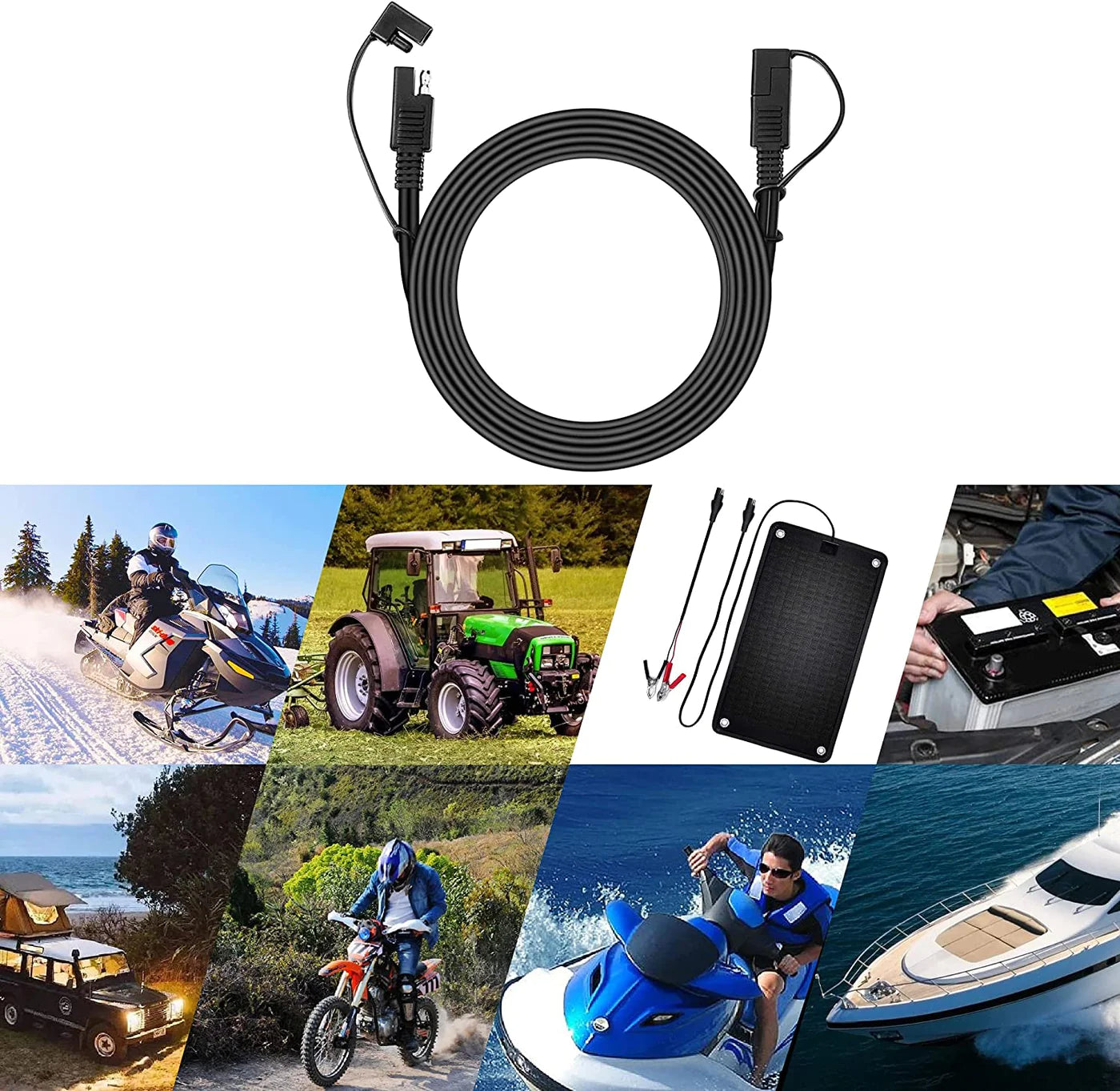 Versatile Applications: The SAE 14AWG 20ft Extension Cable is suitable for a wide range of applications, including automotive, marine, RV, and off-grid solar systems. Whether you're extending the reach of power connections for battery charging, lighting, heated gear, or other electrical devices, this cable ensures a reliable and efficient power transfer.