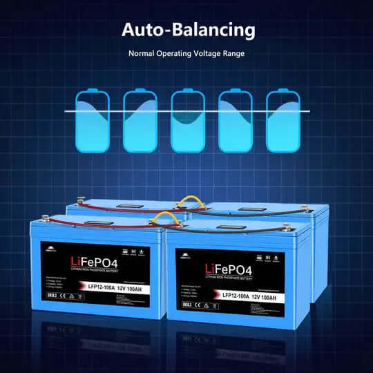 The 12V 100AH LifePO4 Battery with advanced BMS and self-heating function ensure a 4000 long cycle life and exceptional discharge performance. If you’re searching for a deep cycle battery for caravan, RV, solar system, or marine use, this lightweight, auto-balanced, bluethooth,IP65 grade and long-cycle-life lithium-ion battery is the perfect solution for you .