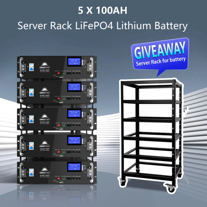 - 1 X Server Rack for 5 X 100AH 51.2V Lifepo4 Batteries