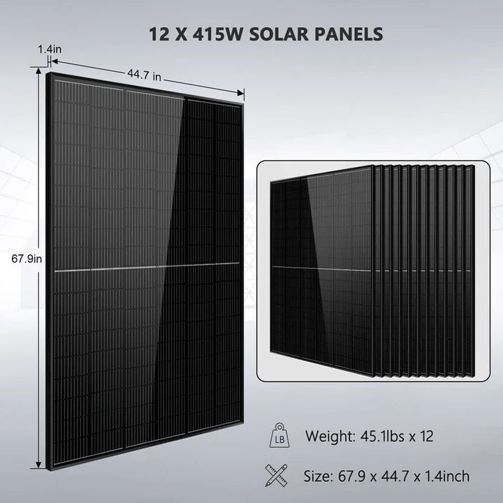 Sungold Power Off Grid Solar Kit 12 X 415 Watts Solar Panels 4 X 5.12KWH Lithium Battery 8000W Solar Inverter 48VDC 120V/240V SGM-8K20