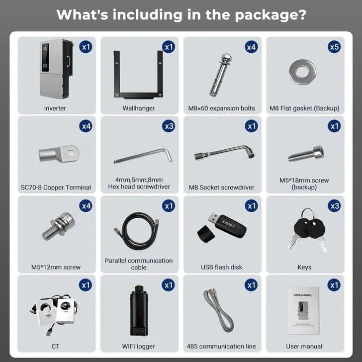 Compatible with SunGoldPower 48 V lithium batteries and other storage systems, it operates flexibly in on-grid, off-grid, or hybrid modes, even feeding excess solar power back to the grid. Designed for efficiency, reliability, and scalability, it is the perfect solution for achieving true energy independence.