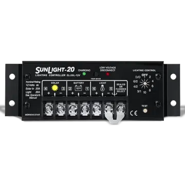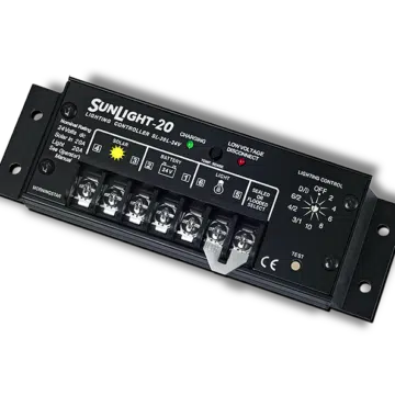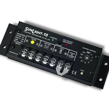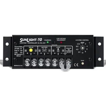 The SunLight™ solar charge controller is World’s leading solar lighting controller for street and pathway lighting, parking areas, bus stations, signage, and much more. This unit is based off of our reliable epoxy coated SunSaver design and the addition of a microcontroller for automatic lighting control functions.