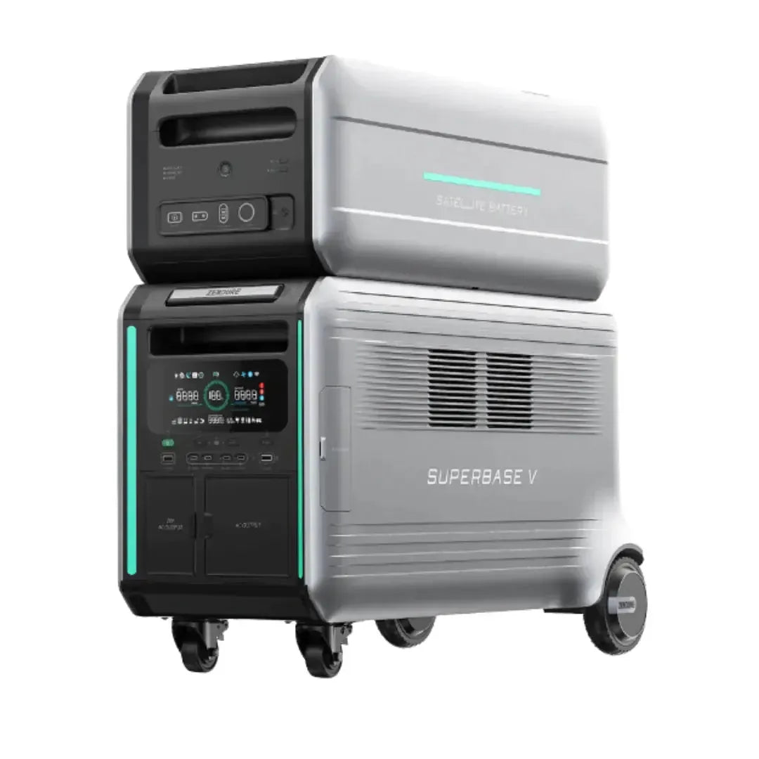 The SuperBase V6400 boasts a storage capacity of 6.4 kWh (6,438Wh). With the maximum configuration, comprising two base units and eight Satellite Batteries, the total capacity reaches 64 kWh. This ample energy supply is sufficient to power a typical household for a week or more.